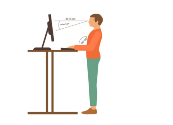 最佳的升降桌高度应当充分考虑人体使用时的舒适度,当你站立使用鼠标和键盘时,手臂应与身体成90度的夹角,与电脑屏幕之间的距离为40-75cm为最佳距离;同时你可以保持站立状态,将眼睛平行于地面,双肩自然下垂,然后使用升降按键,直至手指接触到键盘和鼠标,将办公桌的高度确定在你想要的位置。