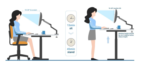 无论您使用的是 PC 还是笔记本电脑,重要的是要确保显示器的高度不要太低或太高,否则会导致头部倾斜,从而让您的颈部、背部和肩部承受更大的压力。