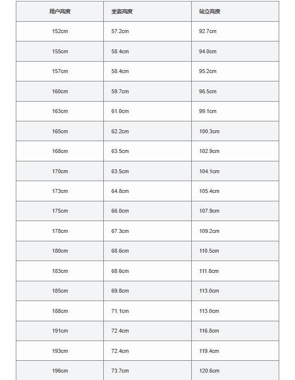 下面的图表可以作为参考,帮助您根据您的身高计算出适合您的坐姿和站立办公桌高度。